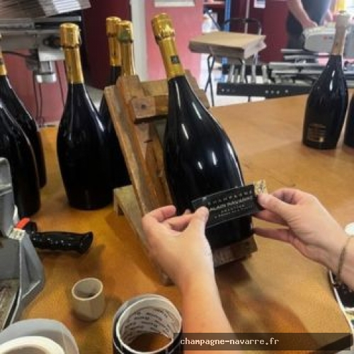The final touch before tasting: labelling. Each bottle is adorned with its label and cap. These graphic elements are both aesthetic and informative, reflecting the identity of our house.